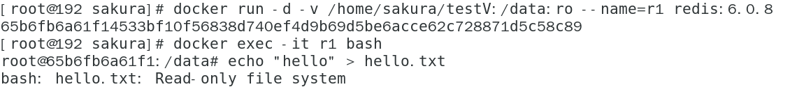 docker run -d -v 主机目录:/data:ro --name=r1 redits:6.0.8