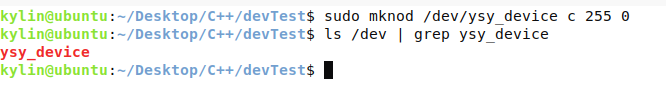 sudo mknod /dev/ysy_device c 255 0